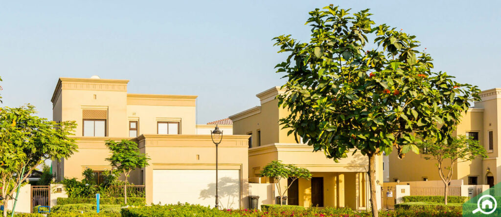 Contemporary Arabian-style villas with pastel exteriors, spacious layouts, and private gardens.